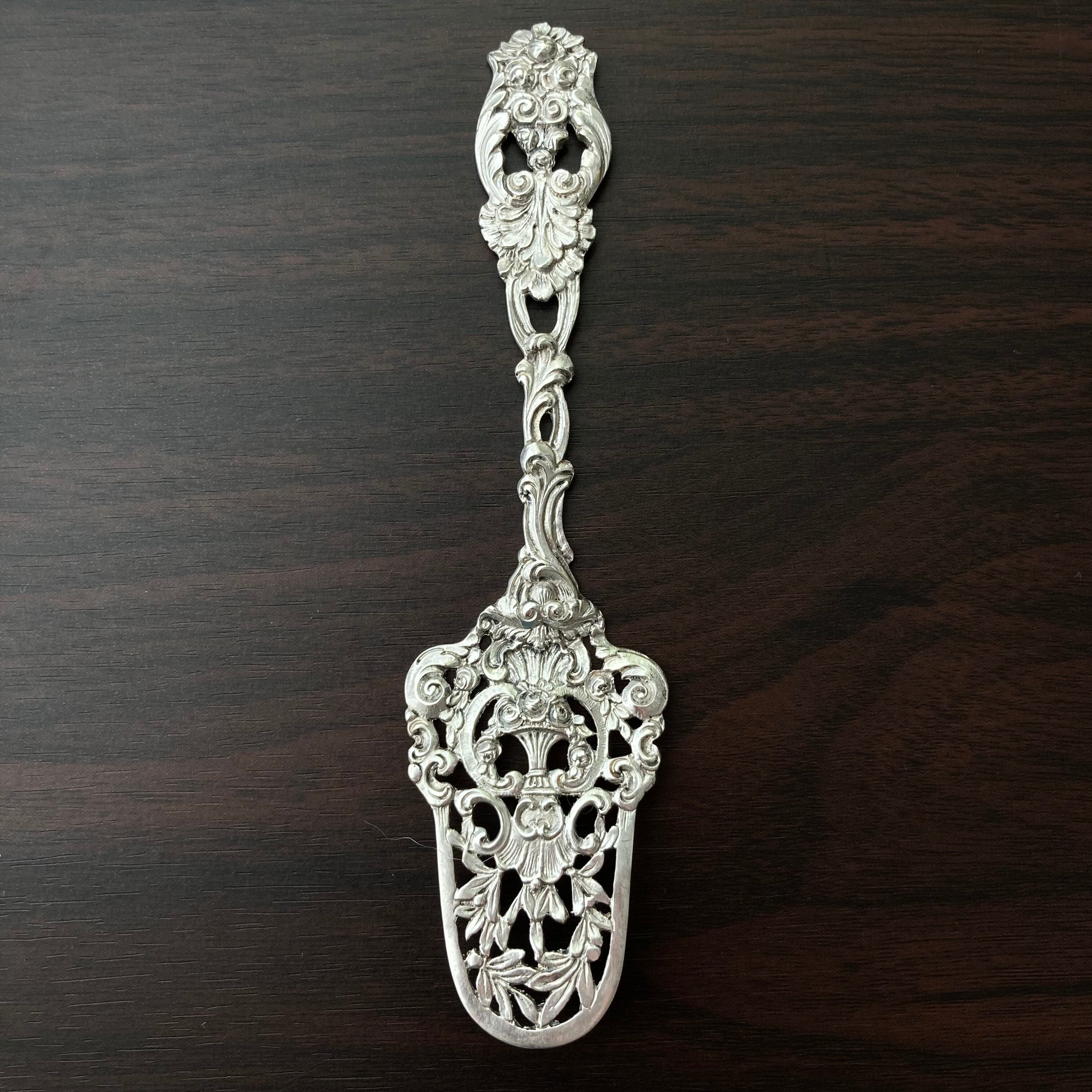 純銀800 デコラティブ満載な華やかな花かごのケーキサーバー