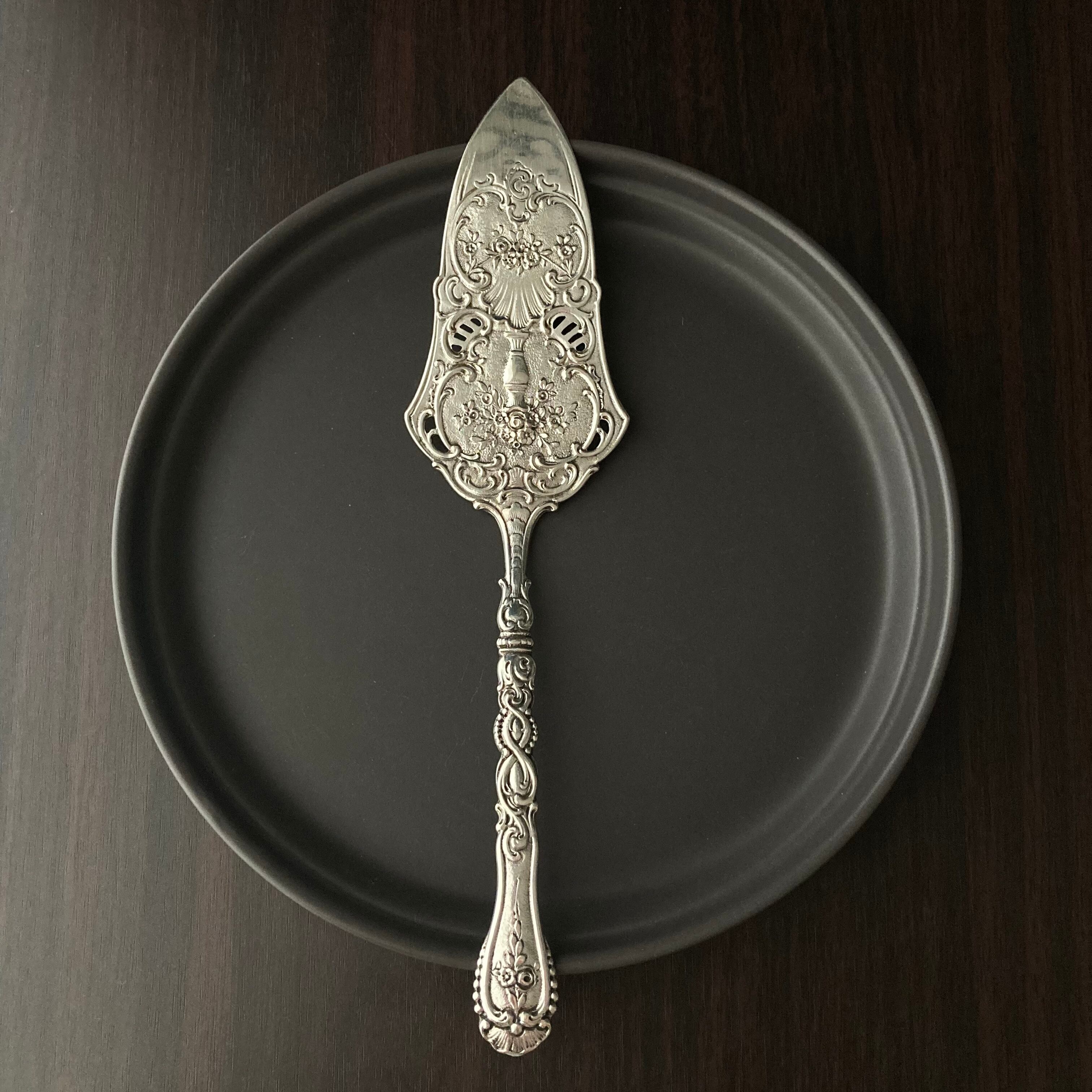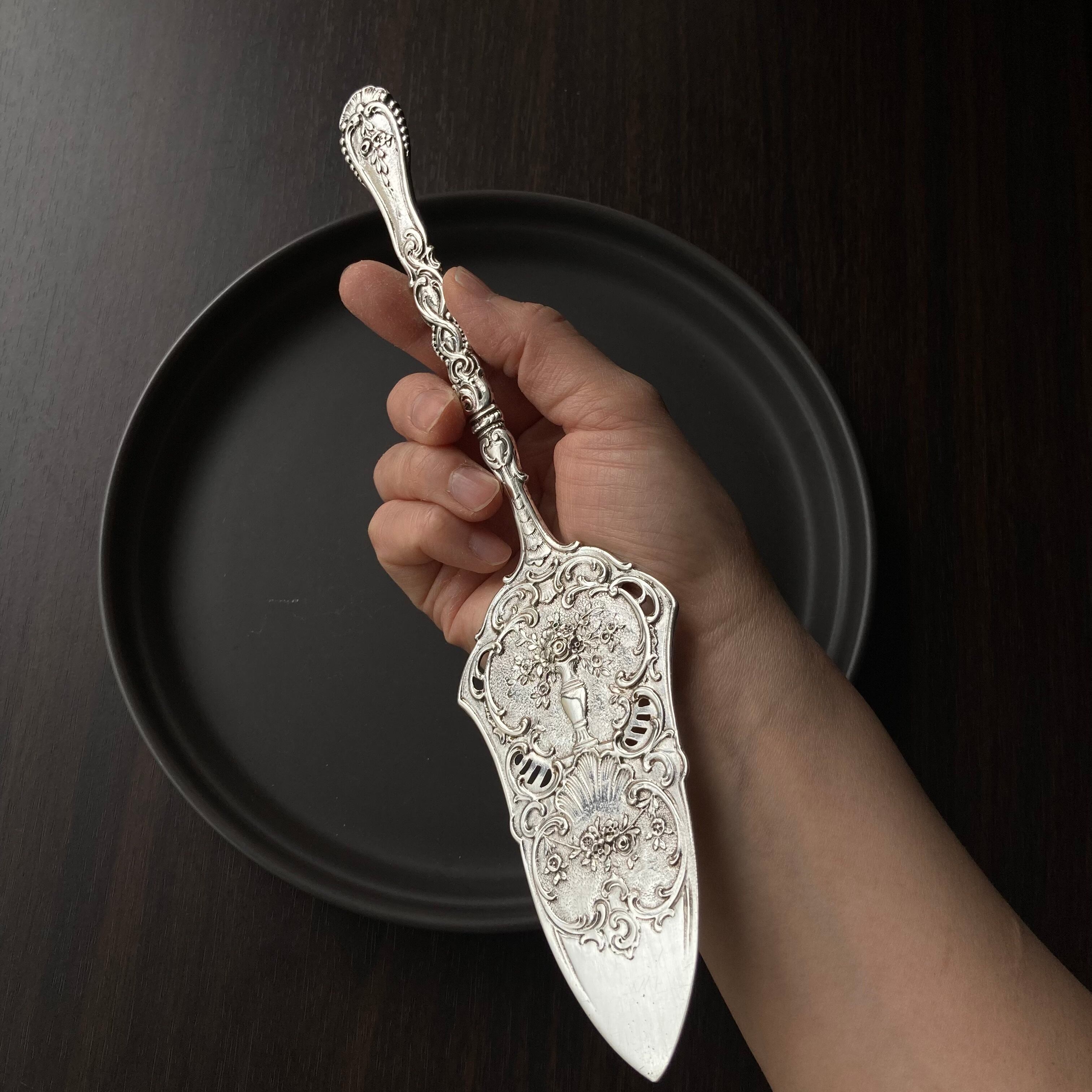 純銀800 華やかなフラワーベースモチーフのケーキサーバー