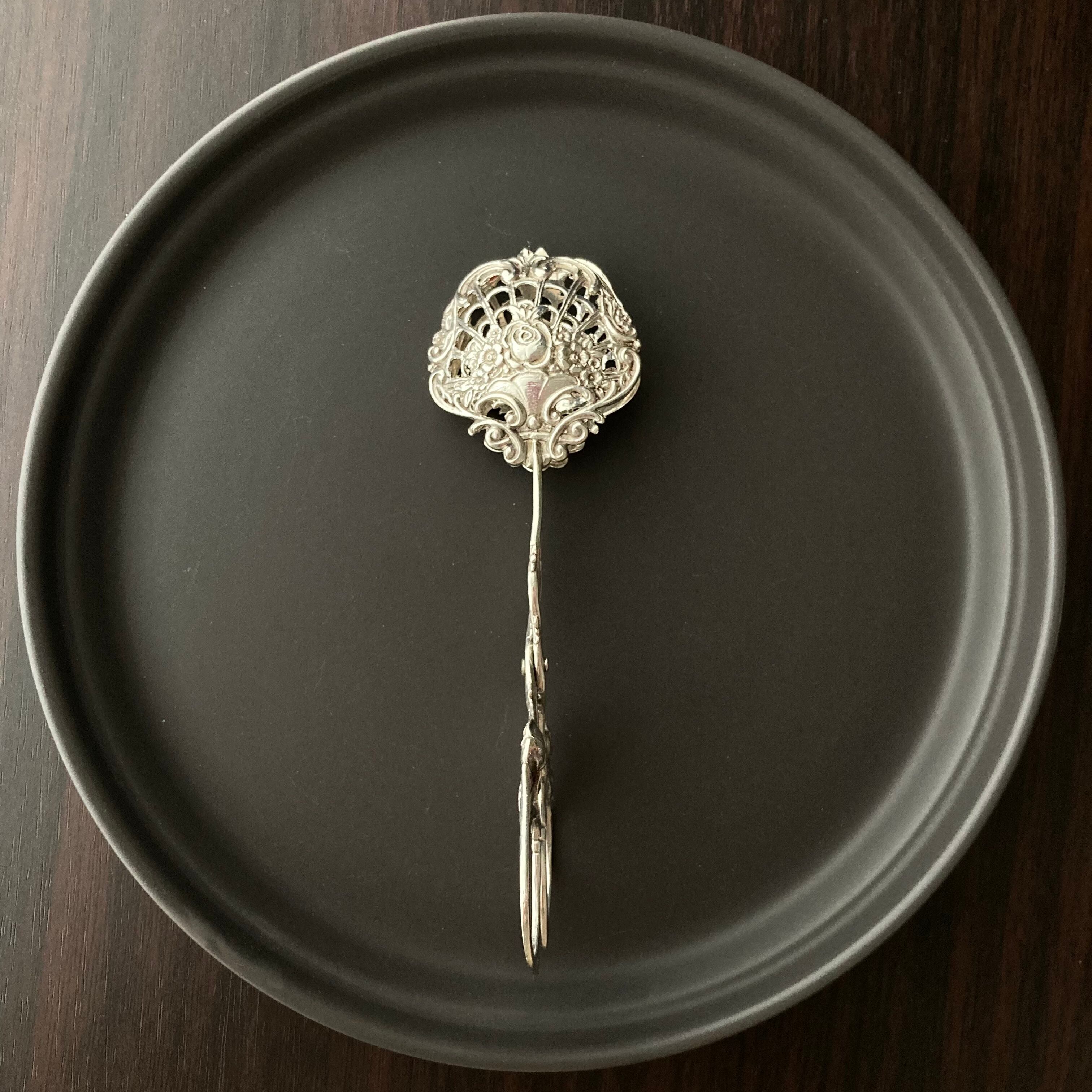 また、アンティーク、ヴィンテージトングは長年愛され使用されたテーブルウェアです。純銀の柔らかさ故に、歪みや傷、くすみなどが生じております。出来る限り店主独断で気になる状態のみを表記しますが、使用する分に問題のないトングは表記していない場合もありますので、ご了承くださいませ。