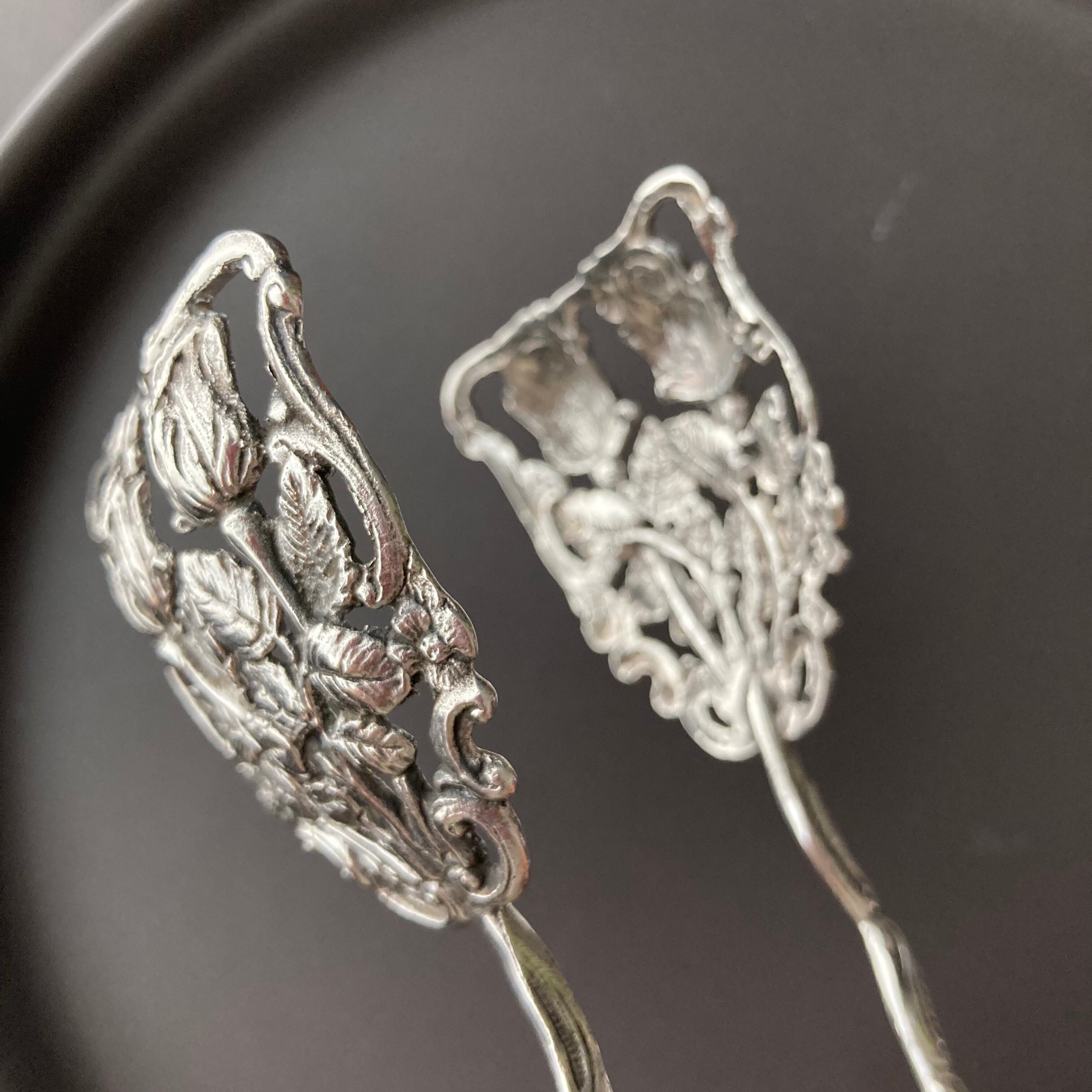 また、アンティークトングは100年以上のカトラリーのモノもございます。純銀の柔らかさ故に、歪みやぐらつきなどが生じる場合もあります。出来る限りトングの状態を表記しますが、使用する分に問題のないトングは表記していない場合もありますので、ご了承くださいませ。