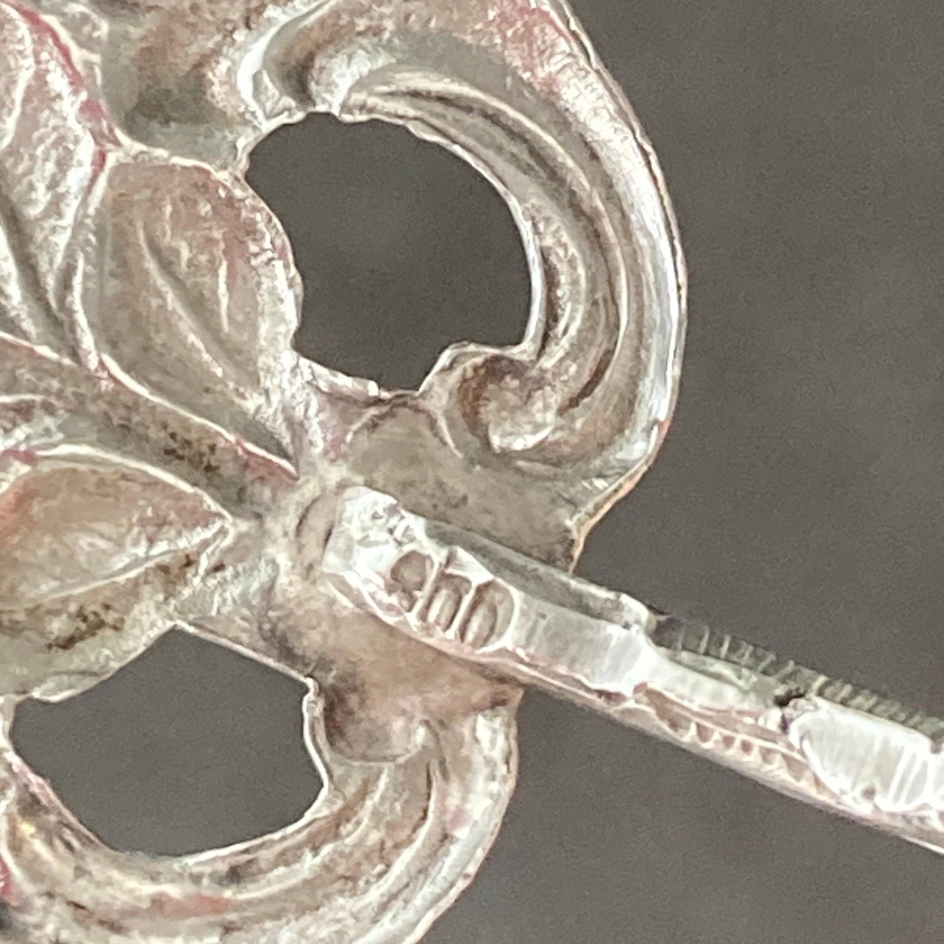 トングのグリップとモチーフの付け根の内側に純銀800を示す刻印が確認できます。