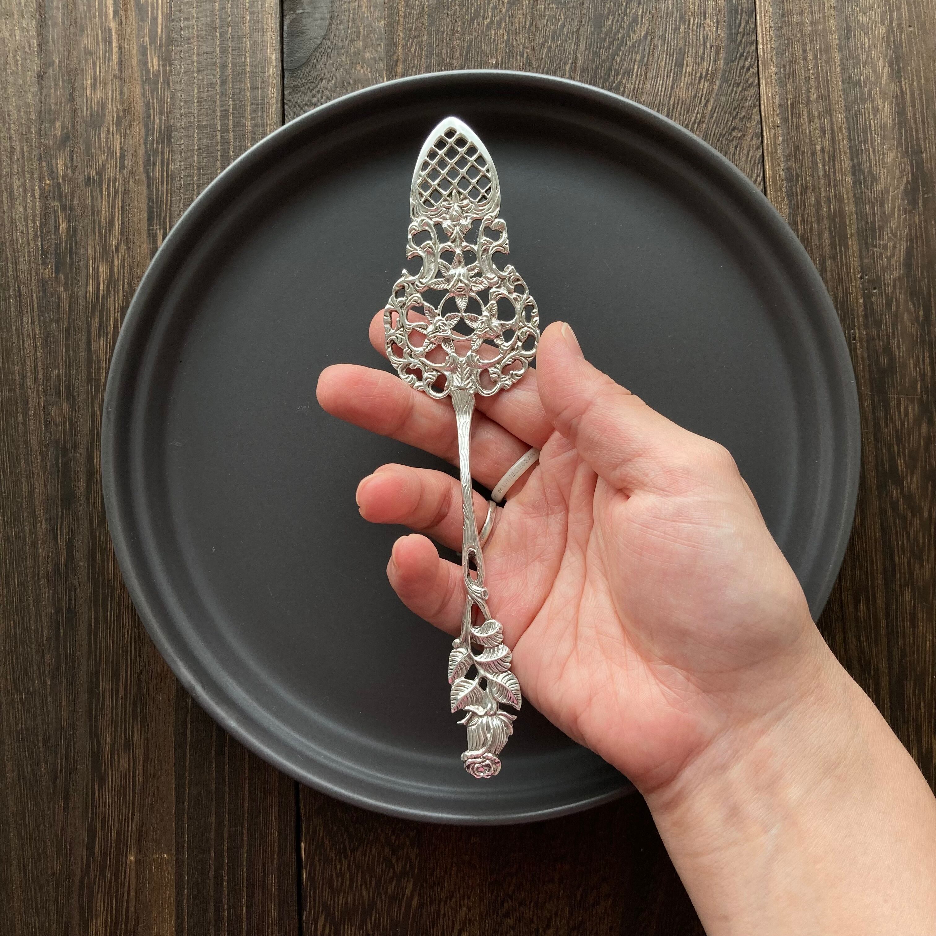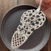 格子状の先端から囲むローズが優しく華やぎどこを見てもうっとりで上品なデザインとなったサーバーです。蔦のデザインがレースのようにくるくると施され、ガーリーな雰囲気がとても可愛いひとつ。サーバー幅4.29センチと小ぶりなので前菜や小さなスイーツを取り分けが出来ます。