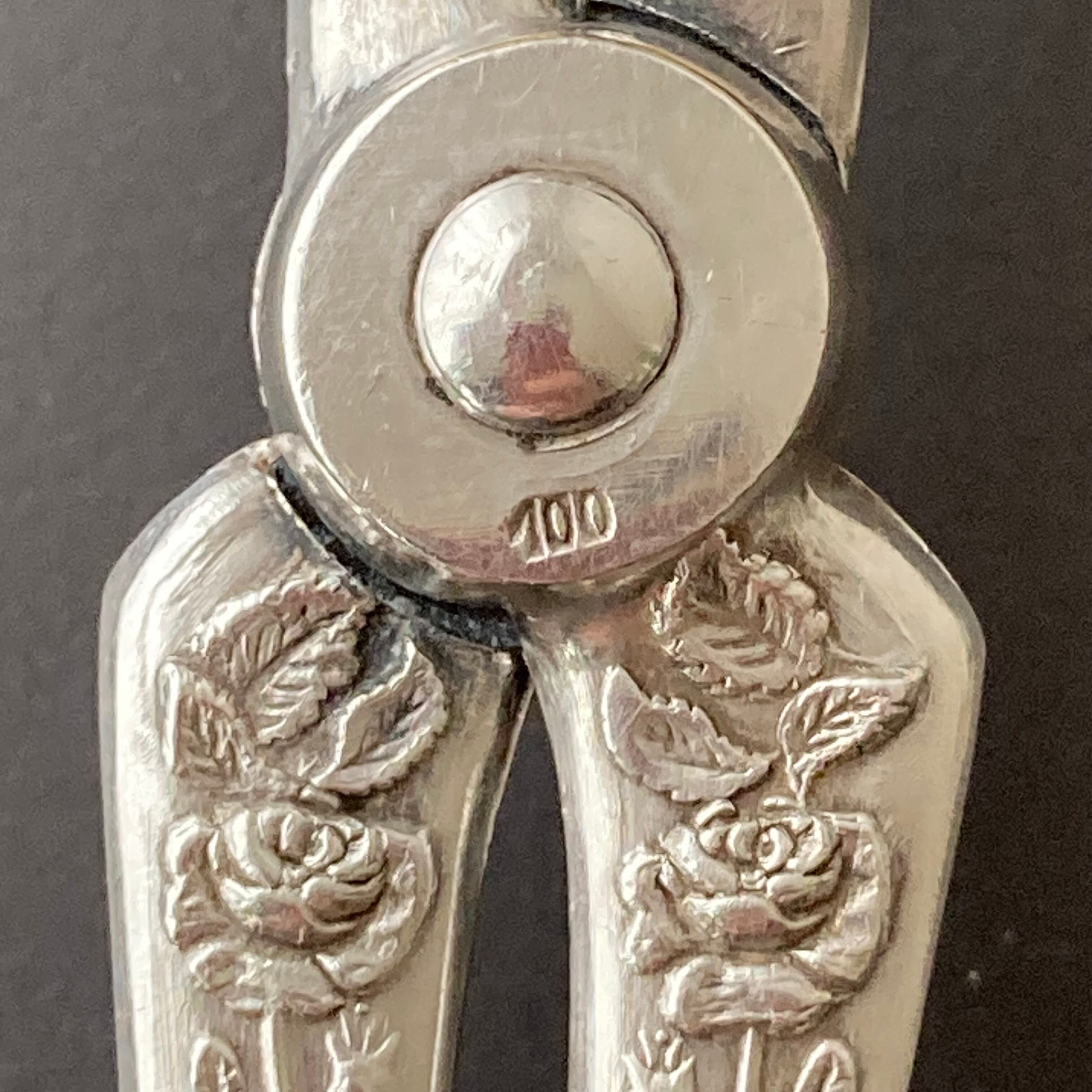 【シルバープレート製】キツネ耳グリップのローズトング